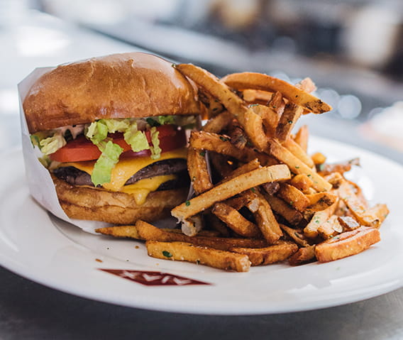 Our table enjoyed the nightly special of Cioppino Ajax Cheeseburger Lamb bolognese tomato soup wedge salad and of course the mountain favorite truffle. Its always fun to find out just how many famous faces I can spot at Ajax Tavern eating a burger and a cone of truffle fries says Dana Cowin. Ajax Tavern Casual Dining French cuisine.